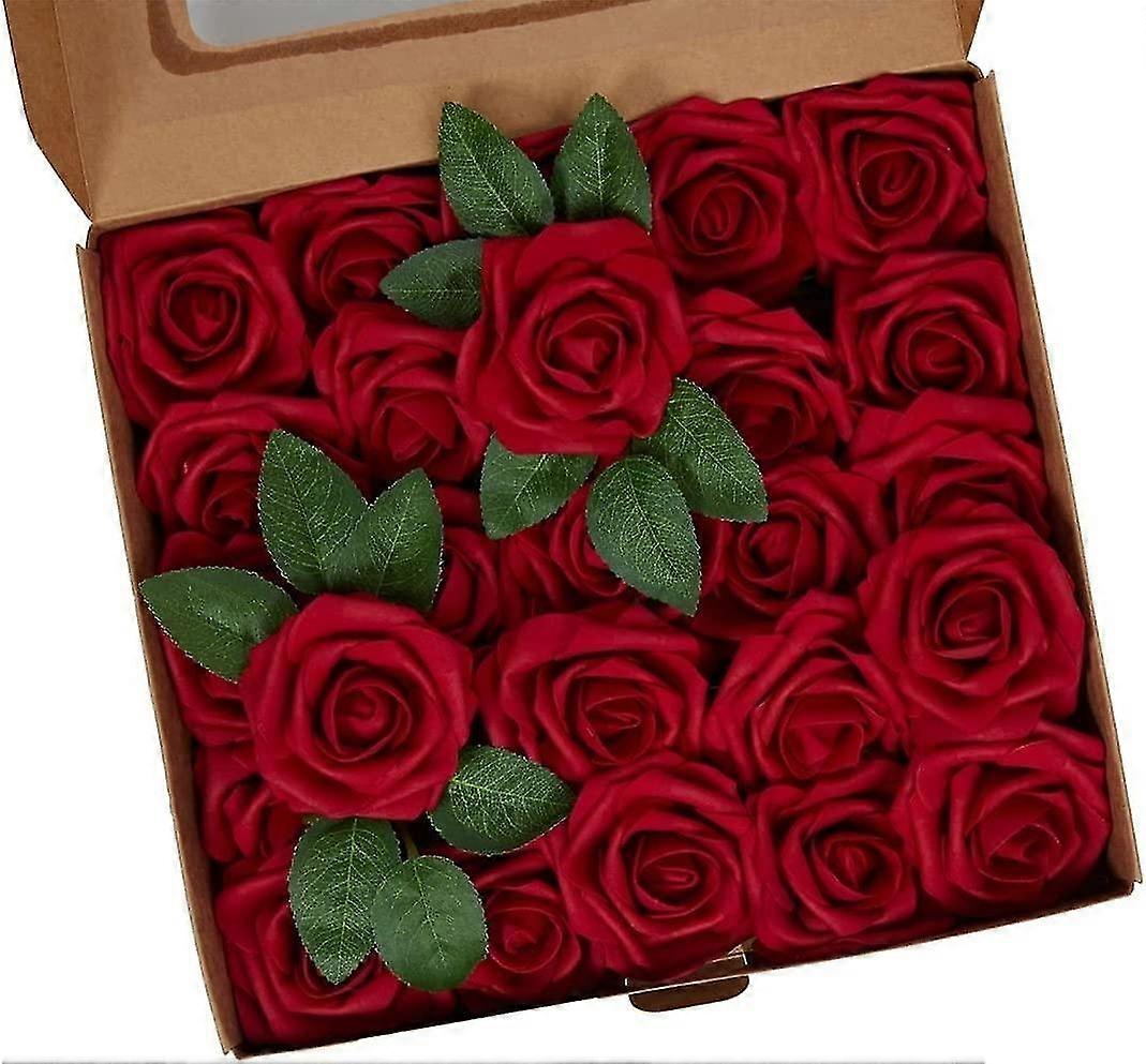 25 Pack Realistic Artificial Roses with Stem for Wedding Bouquets, Centerpieces, Wedding Party, Home