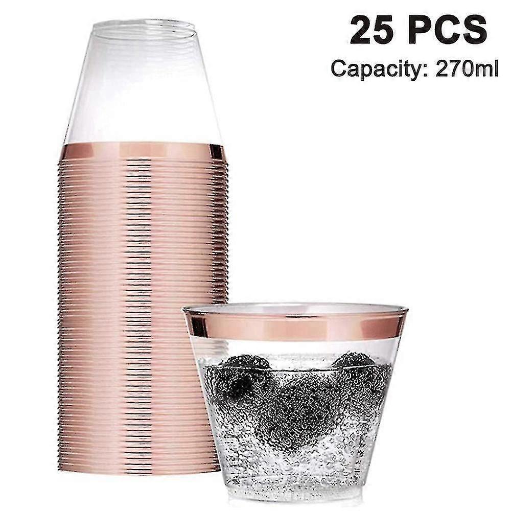 25 Pack - 9 Oz Plastic Cocktail Glass,sturdy Rimmed Plastic Cups Clear Cup Disposable Wedding Cup, Birthday Anniversary Party Cup