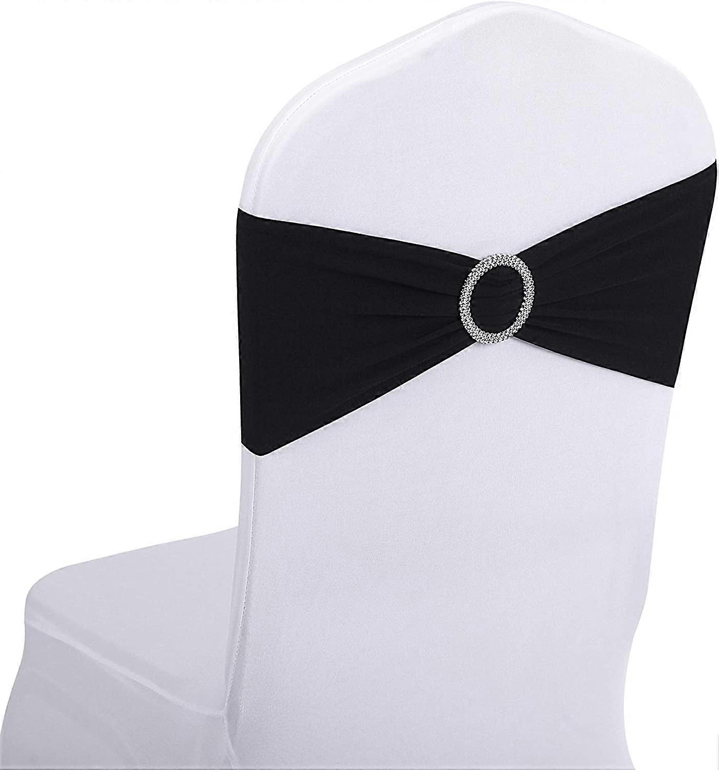 25pcs Black Spandex Chair Sashes with Buckle Slider for Wedding, Party Decoration