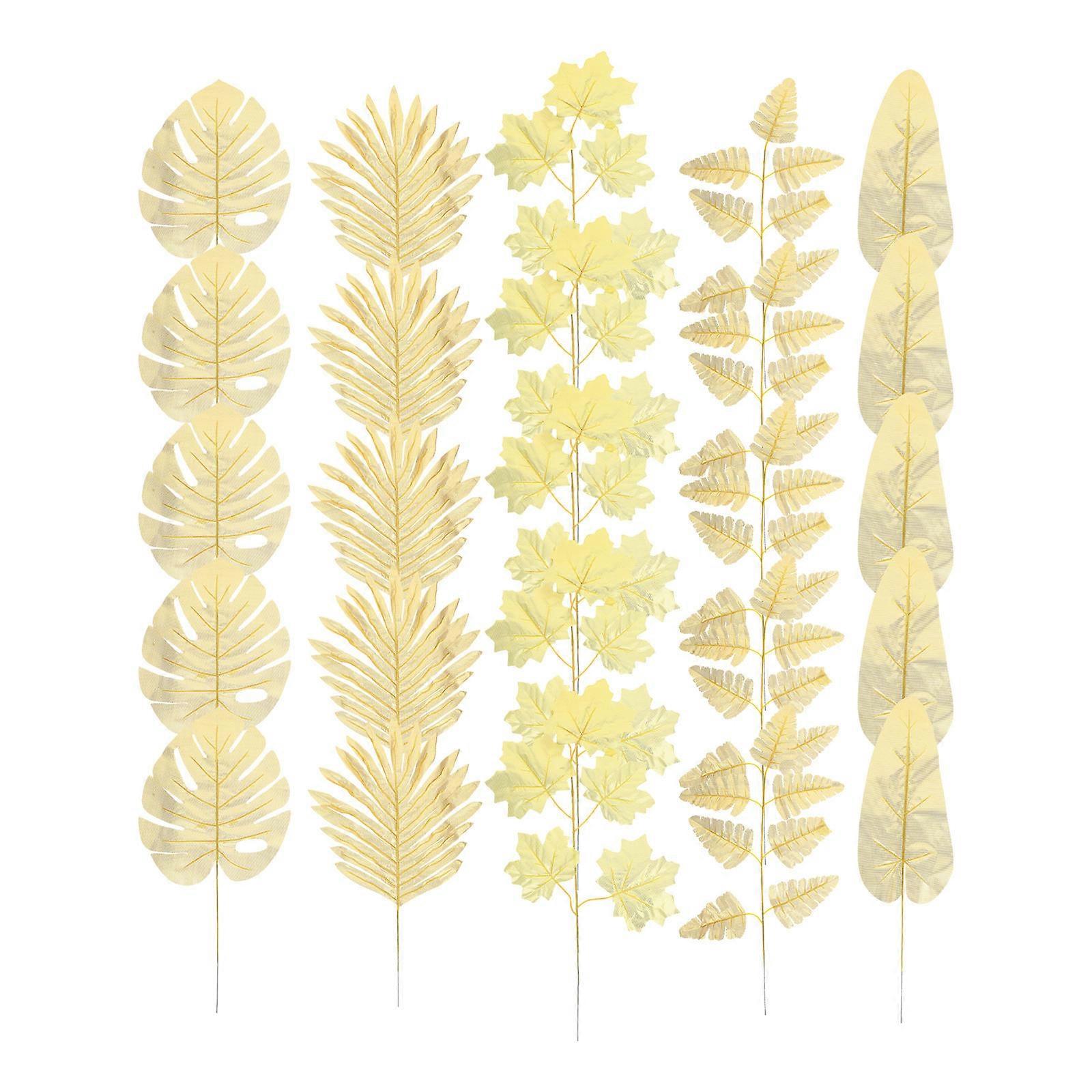 25Pcs Golden Faux Tropical Monstera Leaves Floral Arrangement Decoration Items Hawaiian Luau Party Table Wall Decorations