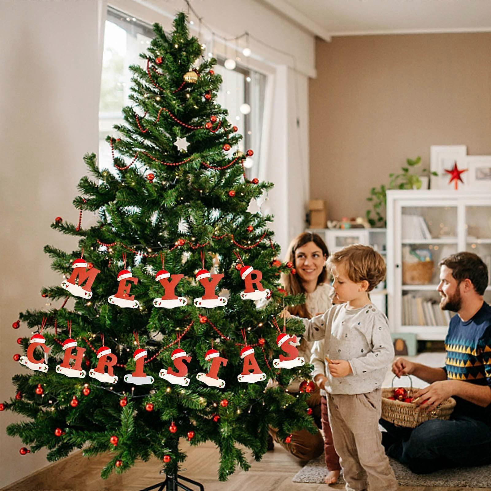 26 Letter Christmas Ornaments Red Christmas Tree Decorations Indoor Home Decor Letters with Santa Hat Crafts,100% New