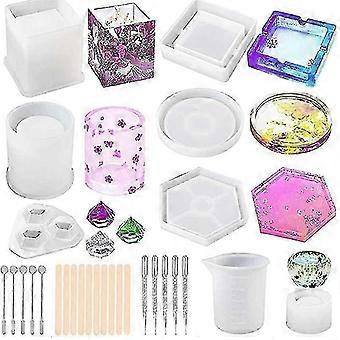 28 جهاز كمبيوتر شخصى قوالب الراتنج سيليكون ، الايبوكسي الراتنج قوالب مجموعة ، دي صب الراتنج الفن قوالب أدوات كيت مع قياس كوب عصا برغي العين ، وشملت كروية ، مكعب