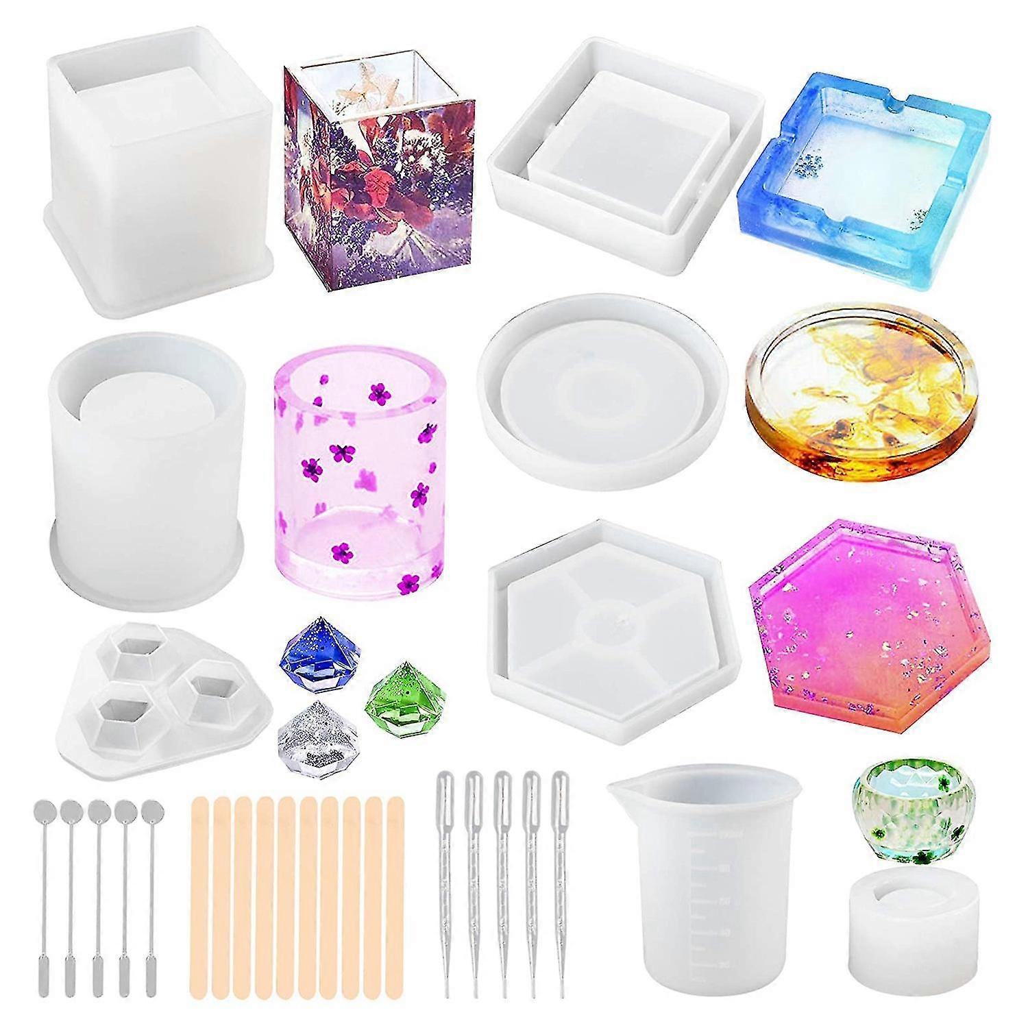 28pcs Silicone Coaster Ashtray Molds For Resin Casting, Diy Art Crystal Diamond Pot Pen Candle Soap
