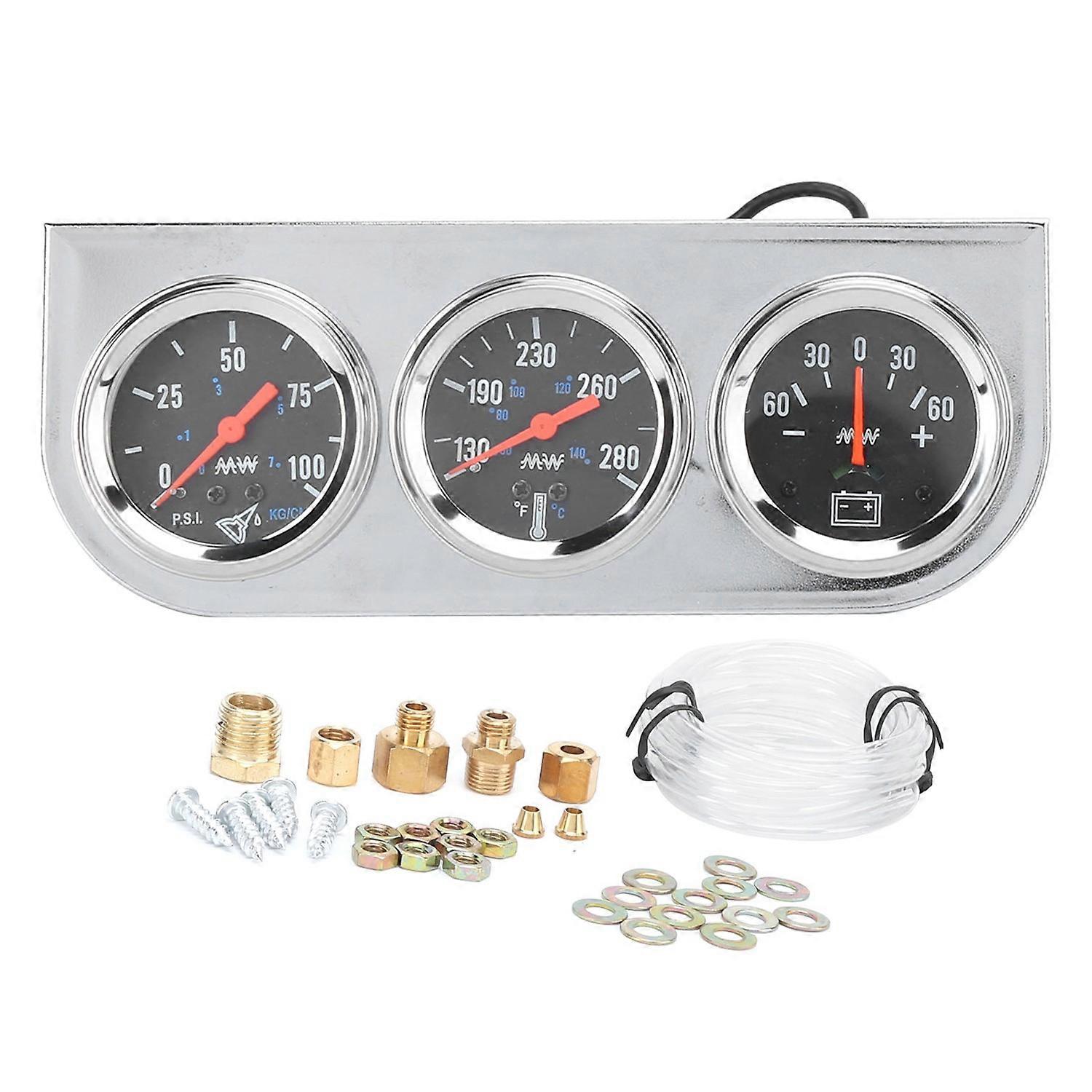 2in Triple Gauge Set 3‑In‑1 Water Temp Oil Pressure AMP Meter Universal for 12V Car Boat Truck