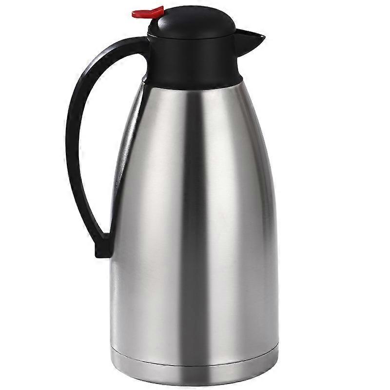 Features:DOUBLE-WALL INSULATION: This insulated carafe jug is a great container for keeping drinks warm or cool. It adopts double-wall stainless steel vacuum insulation to slow down the transfer of heat, keeping your drinks warm or cool for hours without a heat source or fridge.HIGH-QUAILTY: Our thermal carafe is made of high-quality 304 stainless steel, and isnt breakable like other glass carafe. Once you choose our thermal carafe, the odds are youll never have to replace it. The spout is made of strong and stiff ABS plastic, which can pour water smoothly, and after pouring hot water, it will not maintain a high temperature like metal.MEET A VARIETY OF NEEDS: This 2-litre kettle makes it easy to refill water, coffee, or tea in various settings, such as home, garden, office, restaurant, hospital, wedding, camping, party, gathering and so on.SEALED SCREW-TOP LID: Our teapot lid with a sealing silicone ring helps keep your drink hotter and fresher. And you won't need to worry about any spills or leaks, even when the kettle is fully turned.EASY TO USE: The jug uses a one-hand press design for pouring easily, and a triangle-shaped spout helps water gather when pouring. -It adopts double-wall stainless steel vacuum insulation to slow down the transfer of heat, keeping your drinks warm or cool for hours without a heat source or fridge.-Bottle body is made of high-quality 304 stainless steel, the spout is made of strong and stiff ABS plastic, strong and sturdy.-With an airtight silicone ring inside the lid, don't have to worry about any spills or leaks.-Easy to use, the jug uses a one-hand press design for pouring easily, and a triangle-shaped spout helps water gather when pouring.-This 2L kettle makes it easy to refill water, coffee, or tea in various settings, such as home, garden, office, restaurant, hospital, wedding, camping, party, gathering and so on.Specification:Material: stainless steel+ABSSize: 13.5*28cmColour: silverCapacity: 2LPackage Included:1x Thermos flask