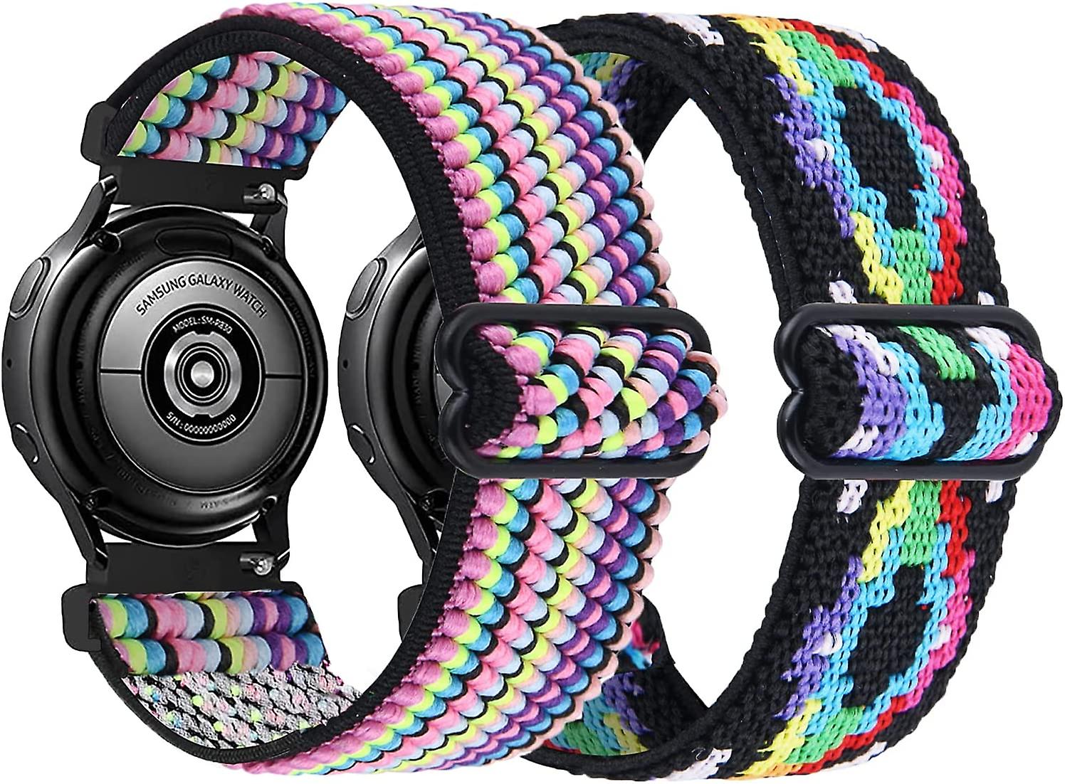 2pack Nylon Bands Compatible With Samsung Galaxy Watch Active 2 , 20mm Stretchy Sport Loop Breathable Wristband (rainbow+diamond)