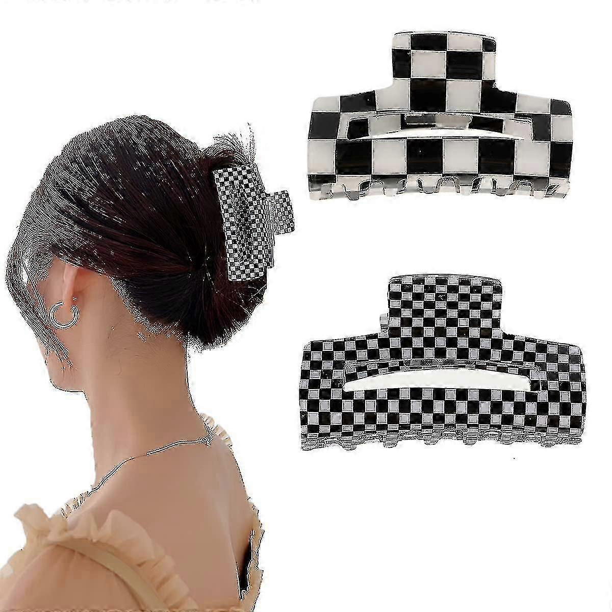 2pack Hair Claw Clips Banana Hair Clips For Women Girls Vintage Design Classic Black White Lattice Print Barrettes Strong Hold Pin Teeth Clamp For Thi