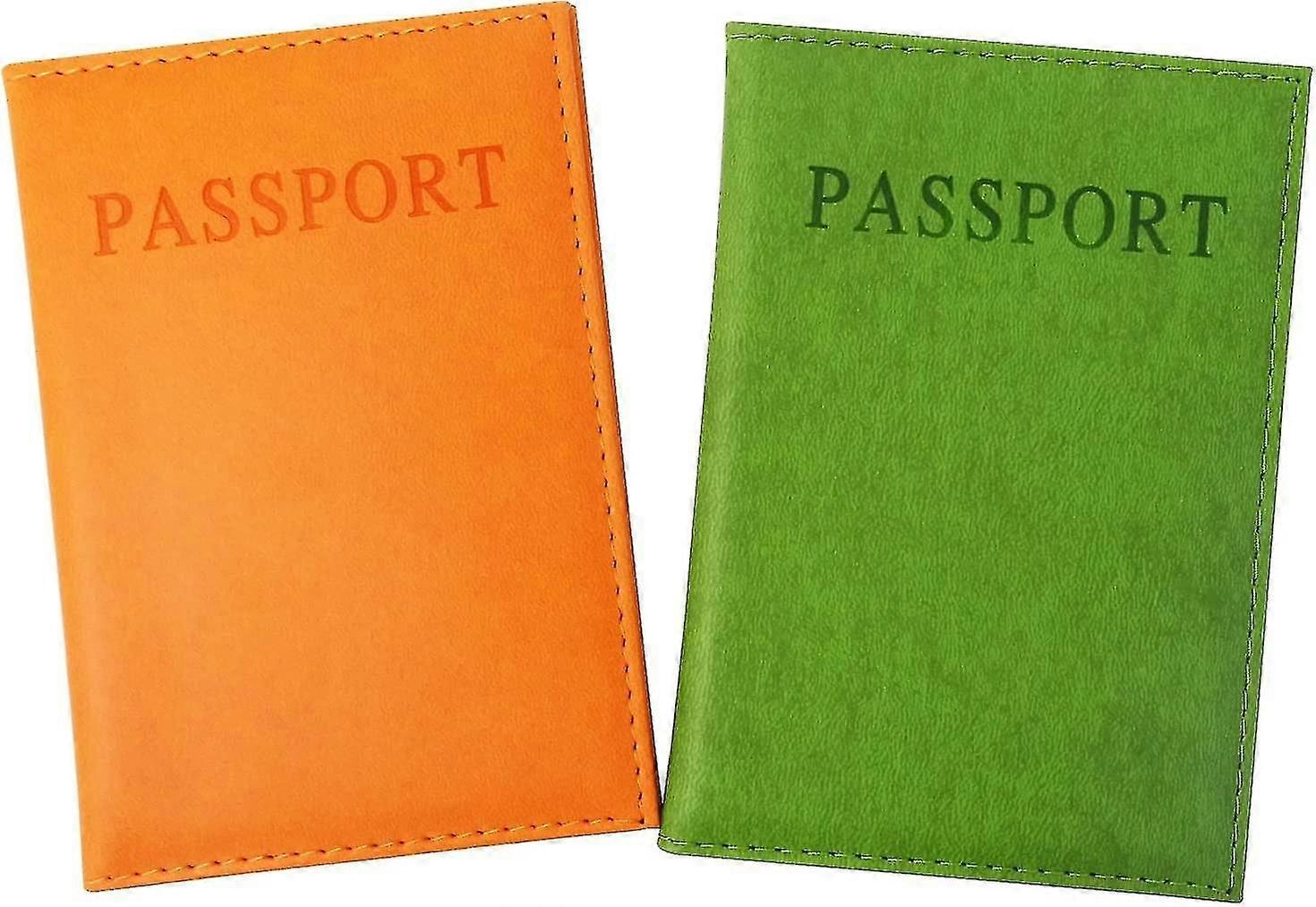 2pcs Artificial Leather Passport Holder Cover Passport Case For Men And Women Orange And Green