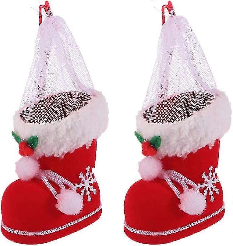 2pcs Christmas Candy Boots With Pom Pom Holiday Cnady Gift Bag Christmas Tree Ornament Christmas Stocking Mini Santa Boots For Fireplace