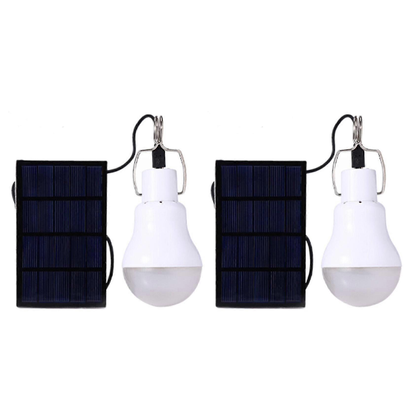 2x Solar Panel Powered Led Bulb Light Portable Outdoor Camping Tent Energy Lamp 15w
