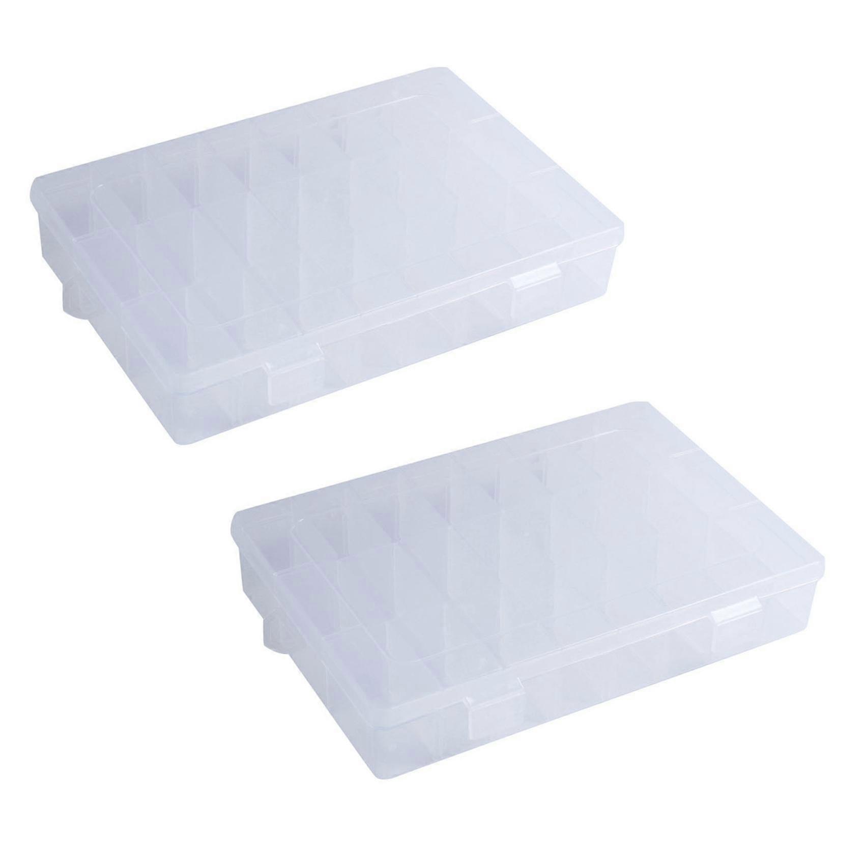 2x 24 Compartment Slot Storage Box Practical Adjustable Plastic Case