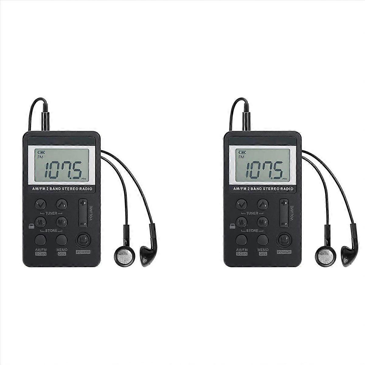 2X Portable Radio FM/AM Dual Band Stereo Digital Portable Mini Radio Receiver with LCD Display Recha