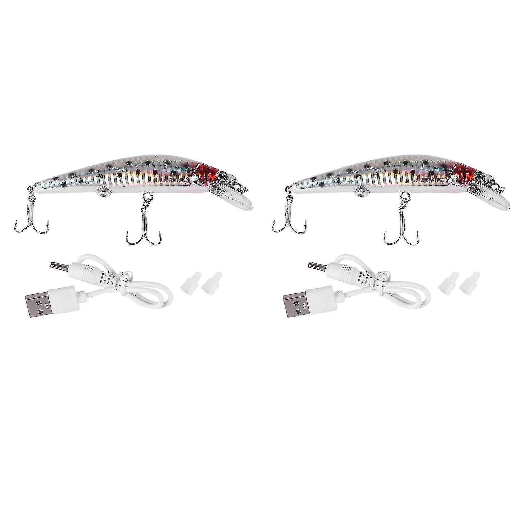 2x Usb Rechargeable Led Twitching Fish Lure Electric Bait Life-like Vibrate Fishing Lure Triple Hoo