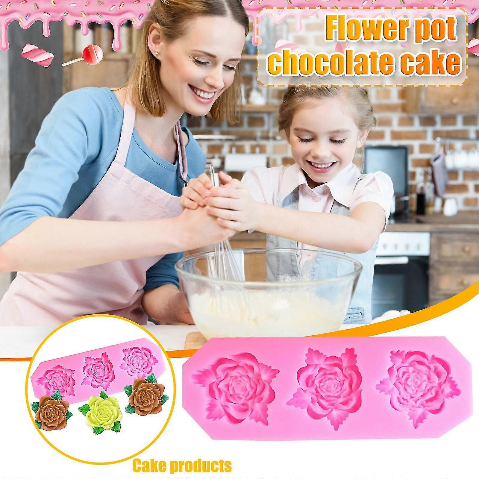 3 Roses Flowers Roses With Leaves Fondant Silicone Mold Baking Cake Decoration