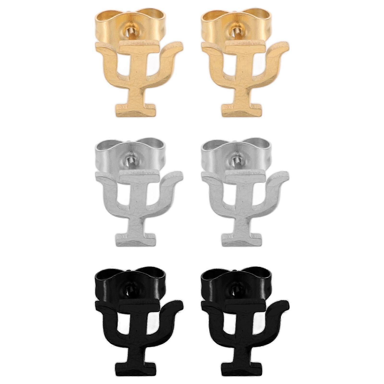3 Pairs Unique Vintage Letter Earrings Stainless Steel Greek Symbol Jewelry for Women's Multi Color