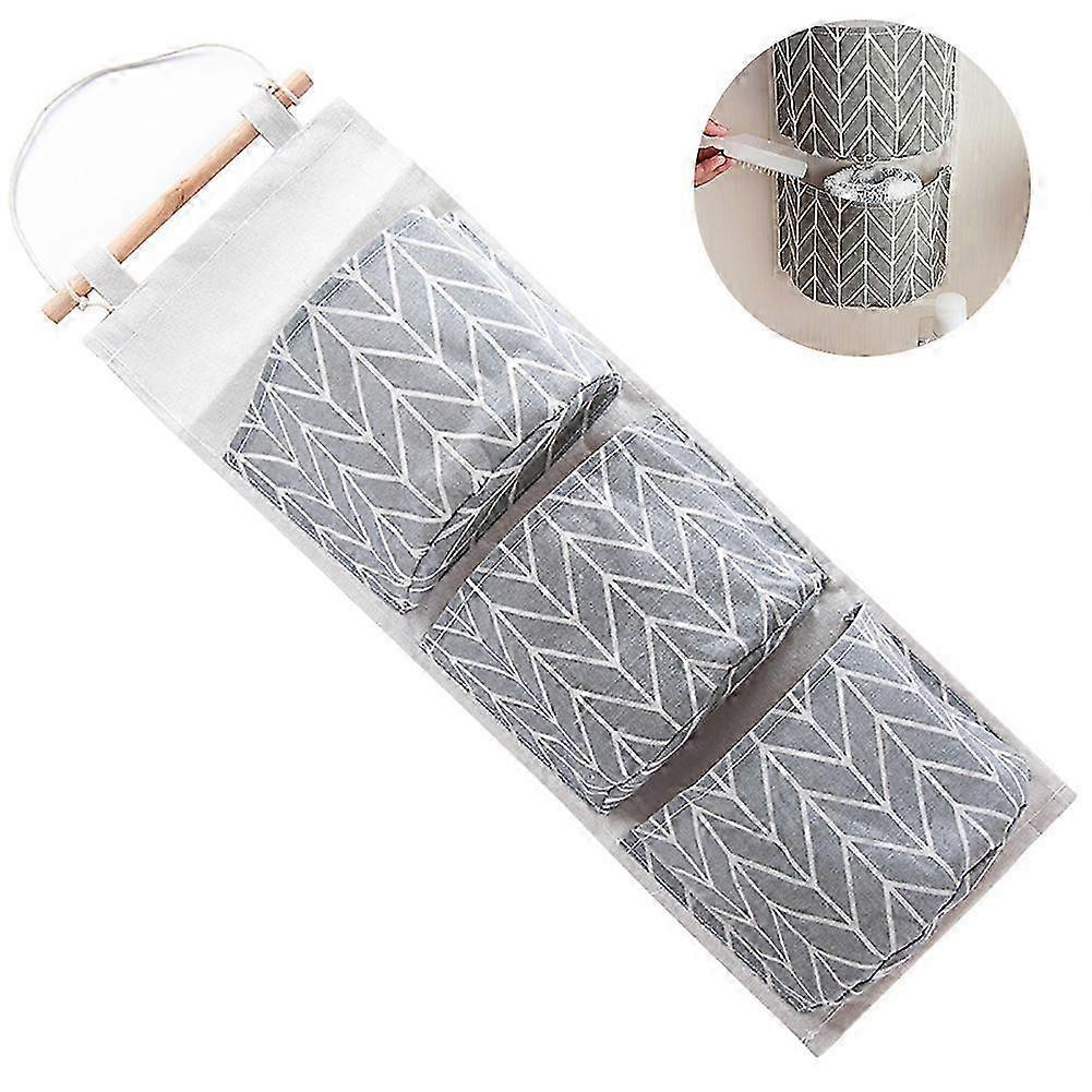 3 Pockets Hanging Storage Bag Over Door Hanging Closet Organizer Linen Cotton Waterproof Storage Bag for Bedroom Bathroom Kitchen