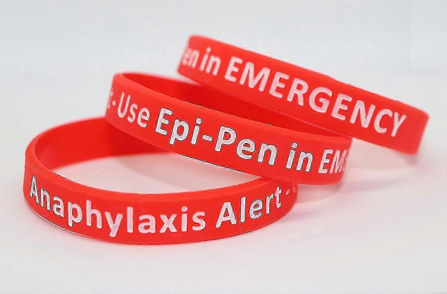 3 Pack-anaphylaxis Epi-pen Medical Alert Id Silicone Red Wristband, One Size 212mm Standard Adult Wrist