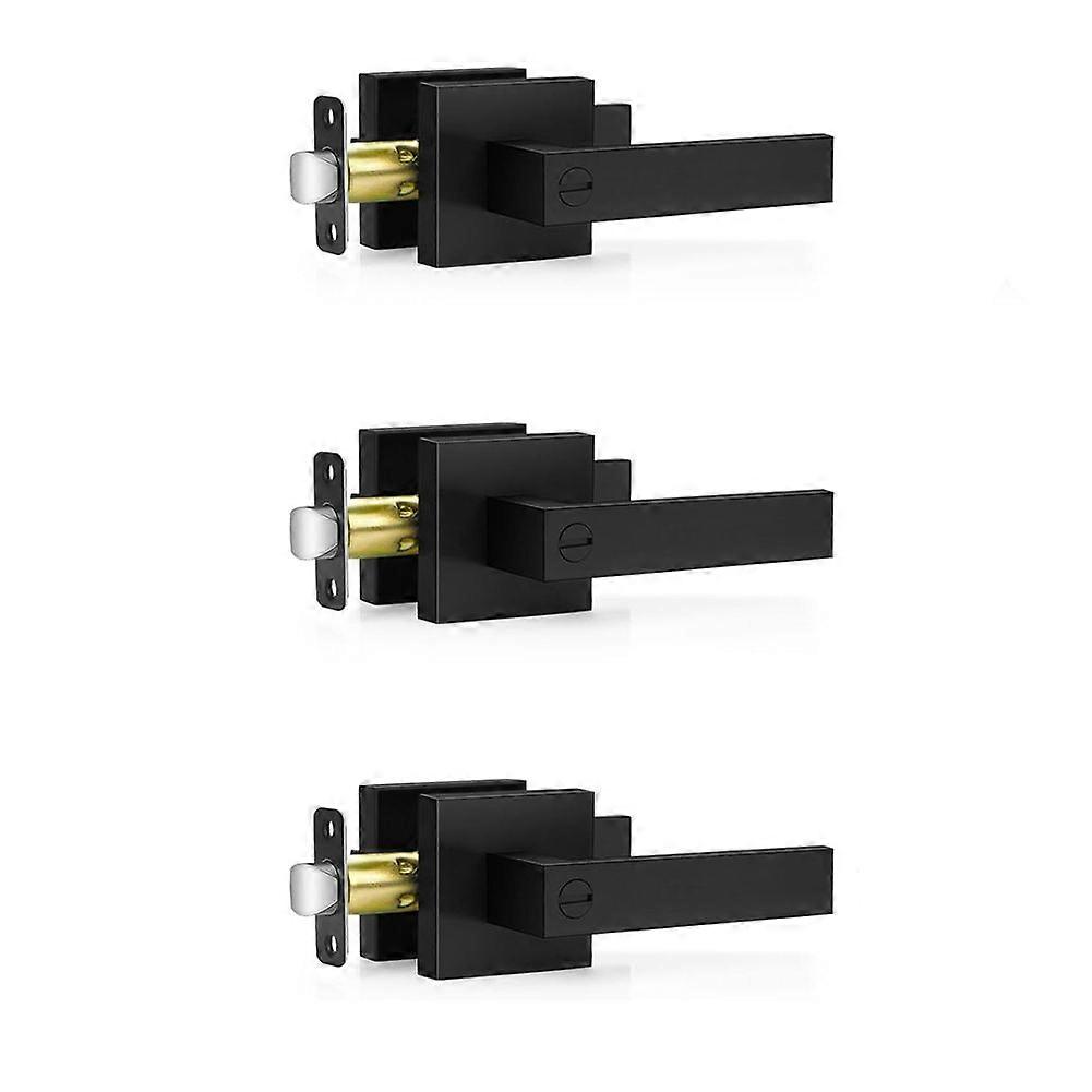 3 Pack Matte Black Door Handles, Keyless Interior Door Knobs, Privacy Door Lever Locksets for Bedro