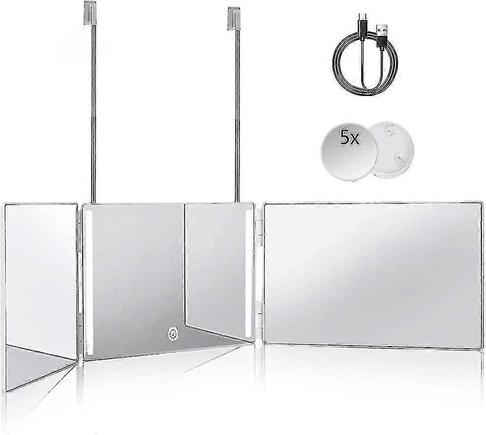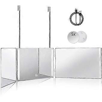 3 Way Mirror For Self Hair Cutting 360 Mirror With Led Lights, Trifold Self Haircut Mirror Rechargeable With Height Adjustable
