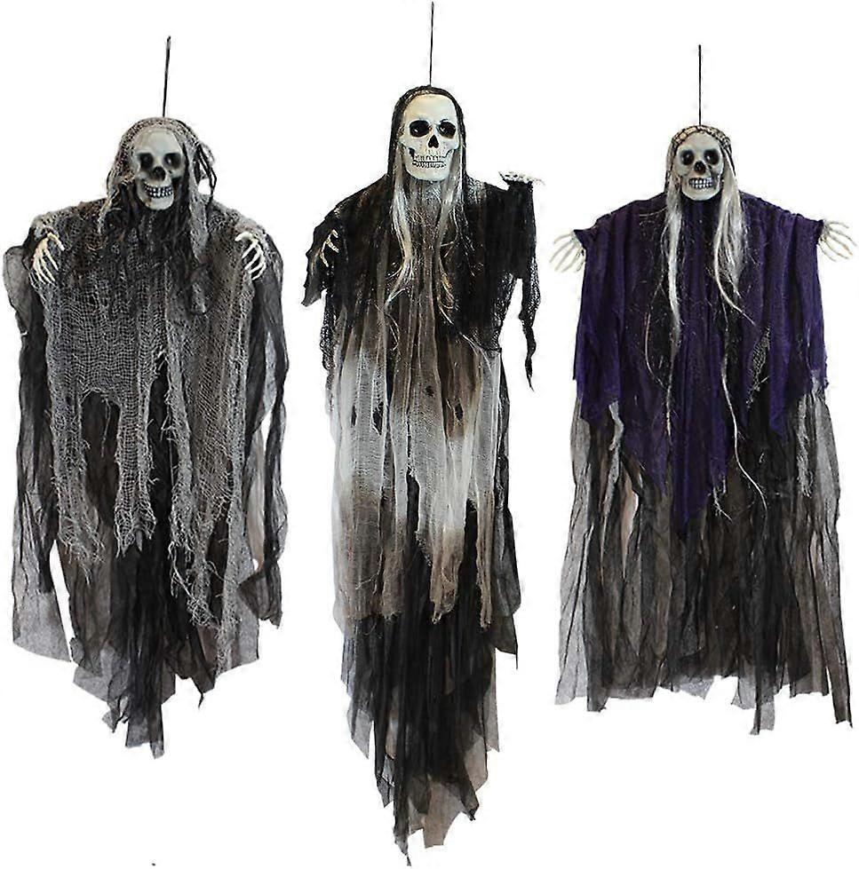 3 Pack Hanging Halloween Skeleton Ghosts Decorations, Grim Reapers for Best Halloween Outdoor Decorations