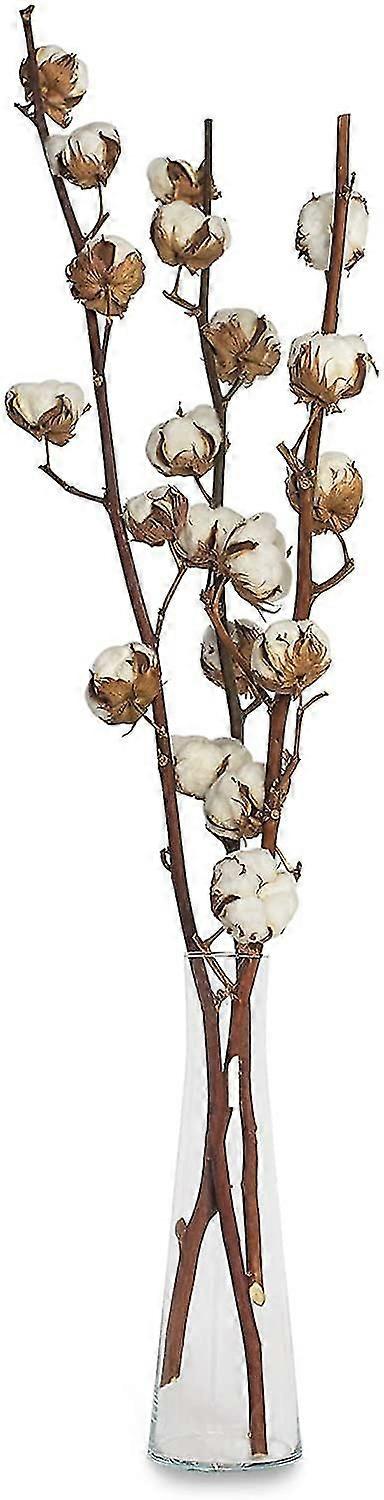 3 Real Cotton Branches - 50 Cm - 7 To 9 Flowers Per Cotton Branch - Real Plant, Dried, Very Durable