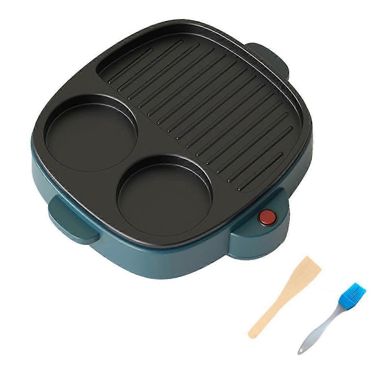 [Ideal for Beginners]Our frying pan is specially designed for cooking novices. With its user-friendly features and consistent performance, it provides a supportive environment for those new to cooking, helping them achieve success in the kitchen with ease. [Multipurpose Use]This versatile skillet is your go-to appliance for a wide range of dishes. Whether you're cooking pancakes, fried eggs, burgers, steaks, or vegetables, its reliable performance ensures delicious results every time, making it a valuable addition to any kitchen. [Easy to Clean]Enjoy hassle-free cleaning with our skillet's smooth . Designed to reduce cleaning time, this feature allows you to simply wipe away residues, making it an ideal choice for busy individuals who value efficiency in the kitchen. [Eco-Friendly Material]: Constructed with high-quality, materials that are designed to last. While primarily made of robust components [Fast and Even Heating]: Equipped with a high-power 900W heating element, this hot pot with grill ensures rapid and uniform heating. Enjoy your meals quicker with less energy consumption, complemented by a clear lid that minimizes smoke and heat loss.<br><br>rated power: 900W rated power supply: 110V~220V-50HZ Colour:A:Blue + Green Plug Type :EU Plug,it applies to Indonesia, Germany, France, Spain, Italy and so on. Voltage: AC 220V Material:Metal<br><br>Package Contents: 1 x breakfast machine 1 x wooden shovel 1 x brush (random colors, don't accept the specified color)<br><br>Only the above package content, other products are not included. Note: Light reflection and different displays may cause the color of the item in the picture a little different from the real thing. The measurement allowed error is +/- 1-3cm.