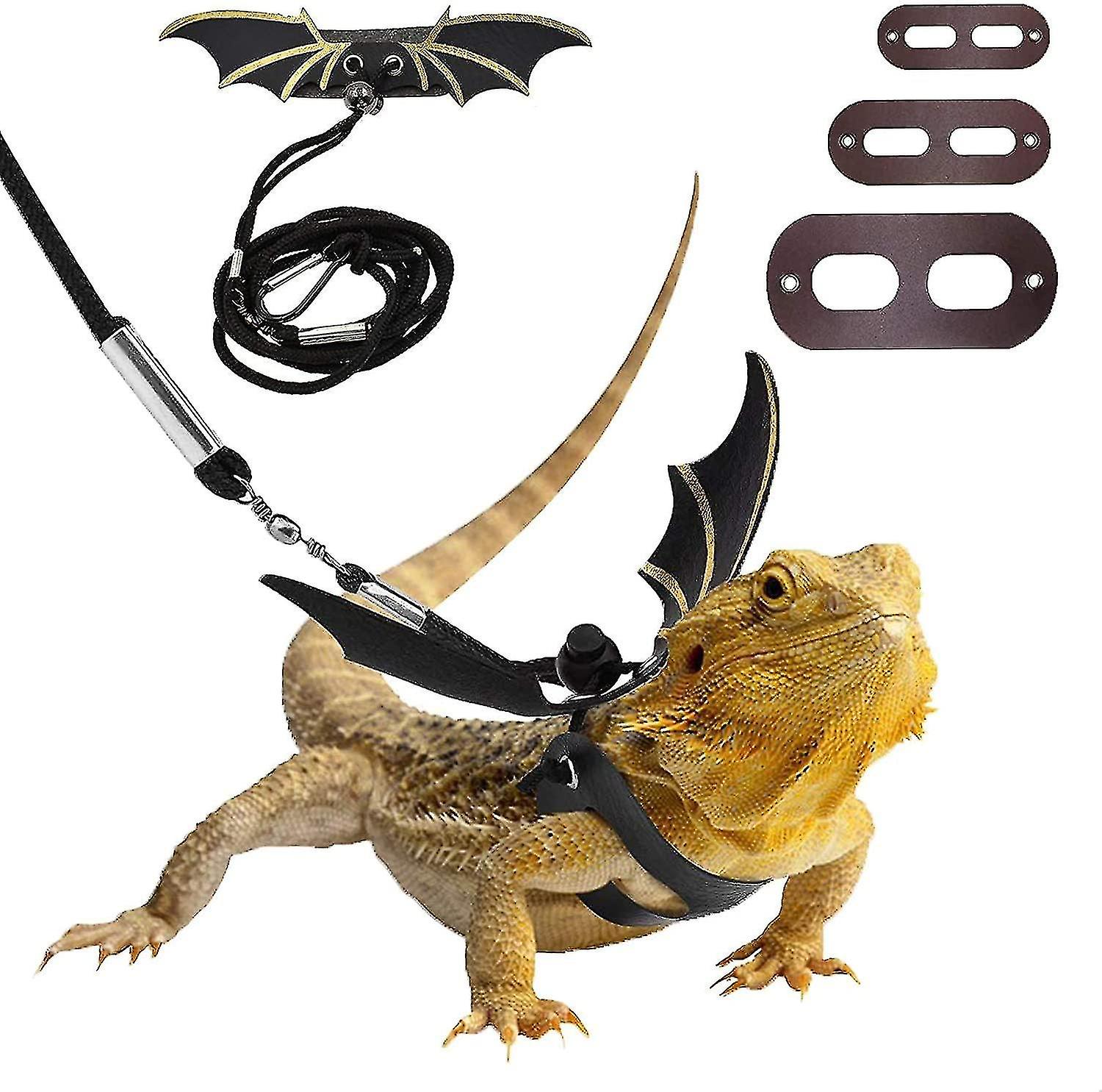 3 In 1 Adjustable Leather Bearded Dragon Reptile Harness With Cool Wings For Outdoor Small Pets For Safe Walking