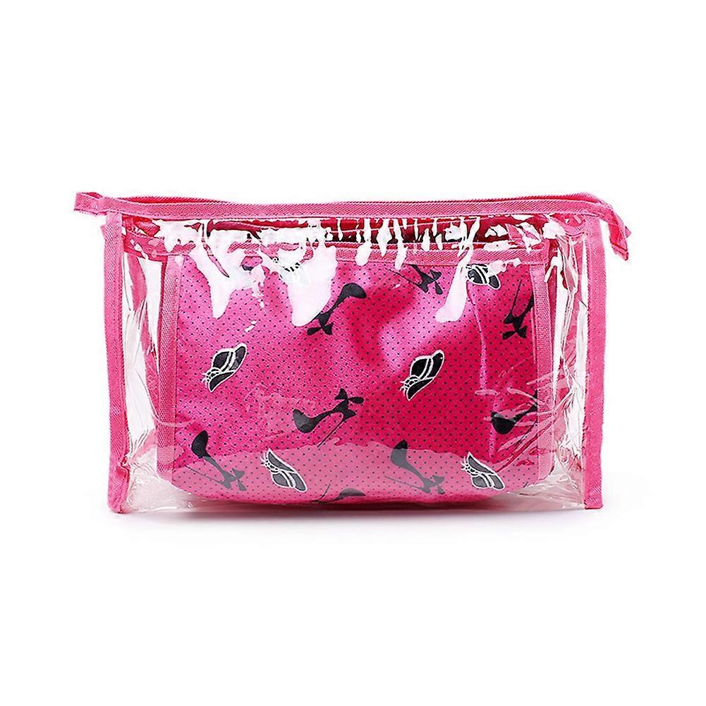 3pc/ Set Reusable Transparent Plastic Storage Makeup Cosmetic Bag for Girls Woman(Rose Red)