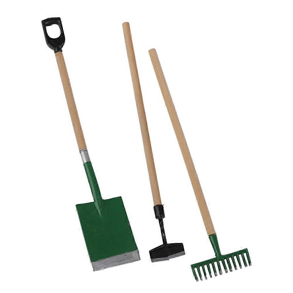 Description These items include a shovel, a hoe and a rake. All these are made from wood and alloy materials. It's a good decor for your mini garden scene toy. The exquisite design and pattern add more living atmosphere. Nice gift for kids or collectors. Features - Color: As Shown.- Material: Wood and Alloy.- Package Size: Approx. 12x5x1cm.- without odor.- Beautiful design and excellent workmanship.- Adding living atmosphere for your mini garden scene.- Detailed scale model for adult collectors.- Nice gift for your children.- for mini garden toy or landscape design. Great for your DIY projects.Packing list: 3 x garden tools