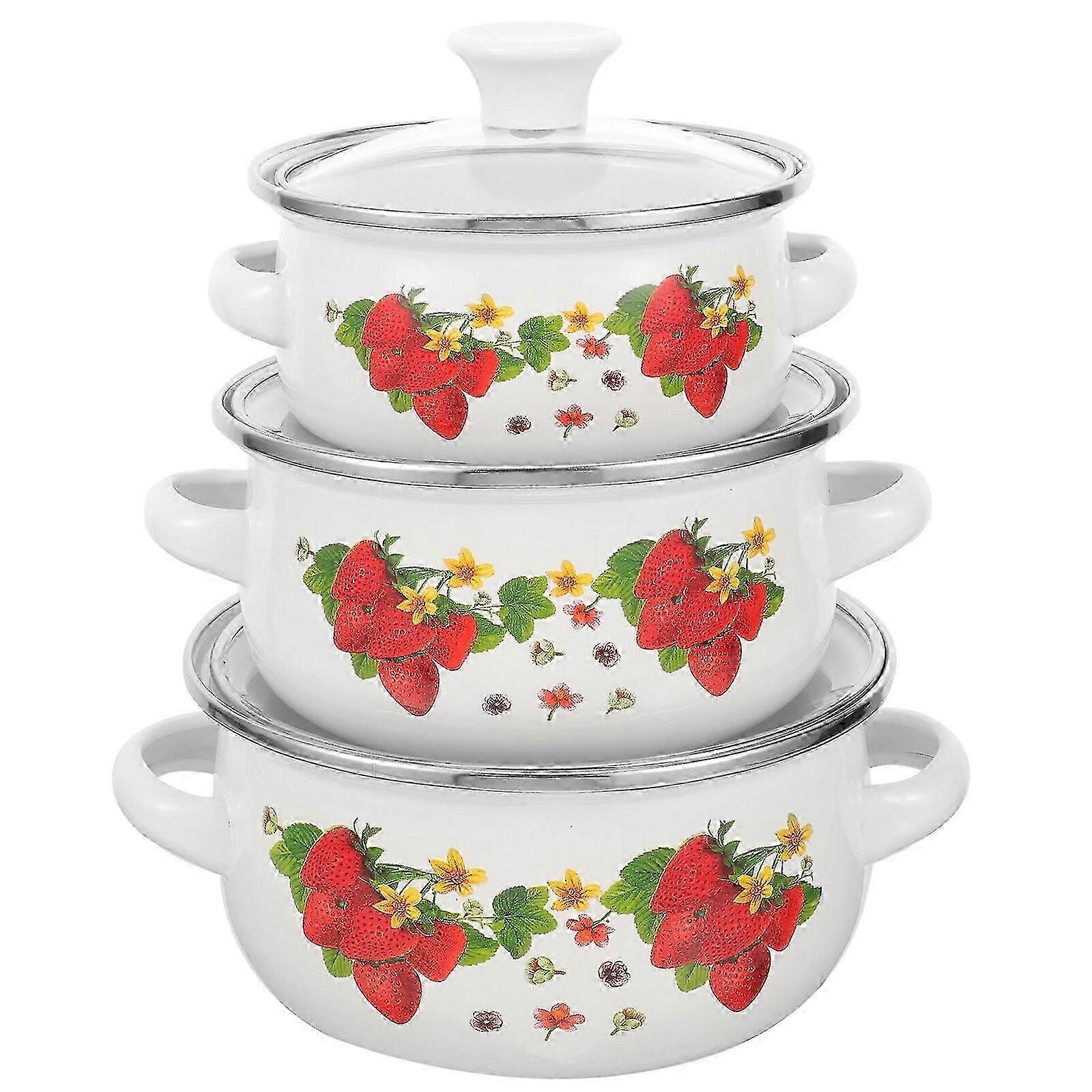 3 Pcs Small Pots Kitchen Enamel Pot Stackable Pan Cooking Pots Stock Pot With Lids