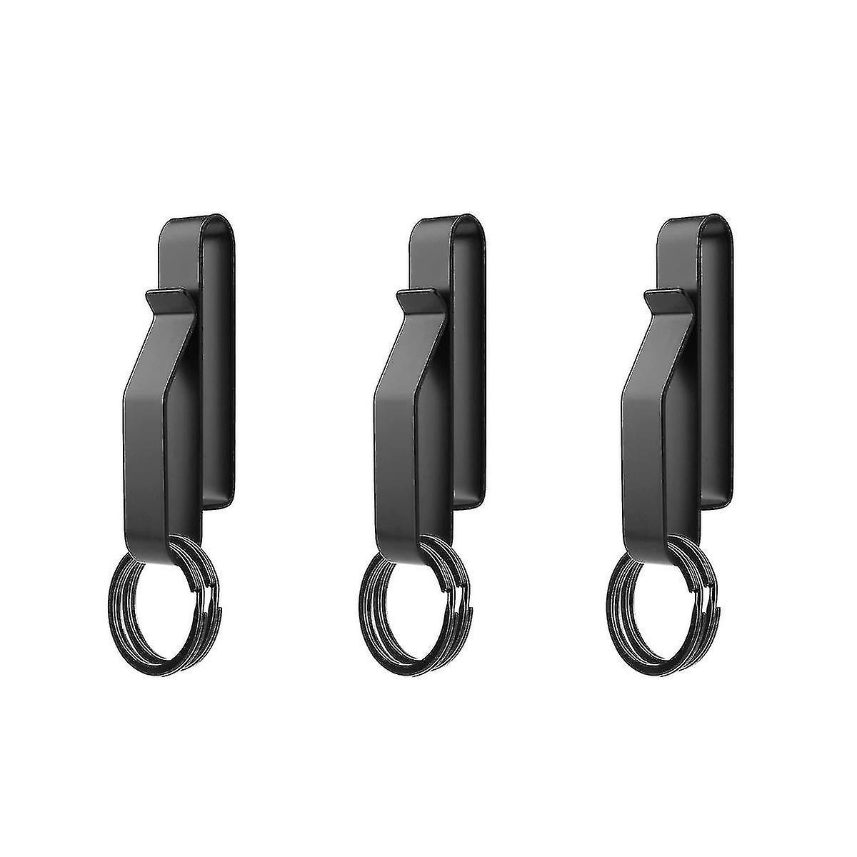 3pcs Heavy Duty Belt Key Holder With 6pcs Metal Key Rings, Stainless Steel Black Men Keychain Tacti