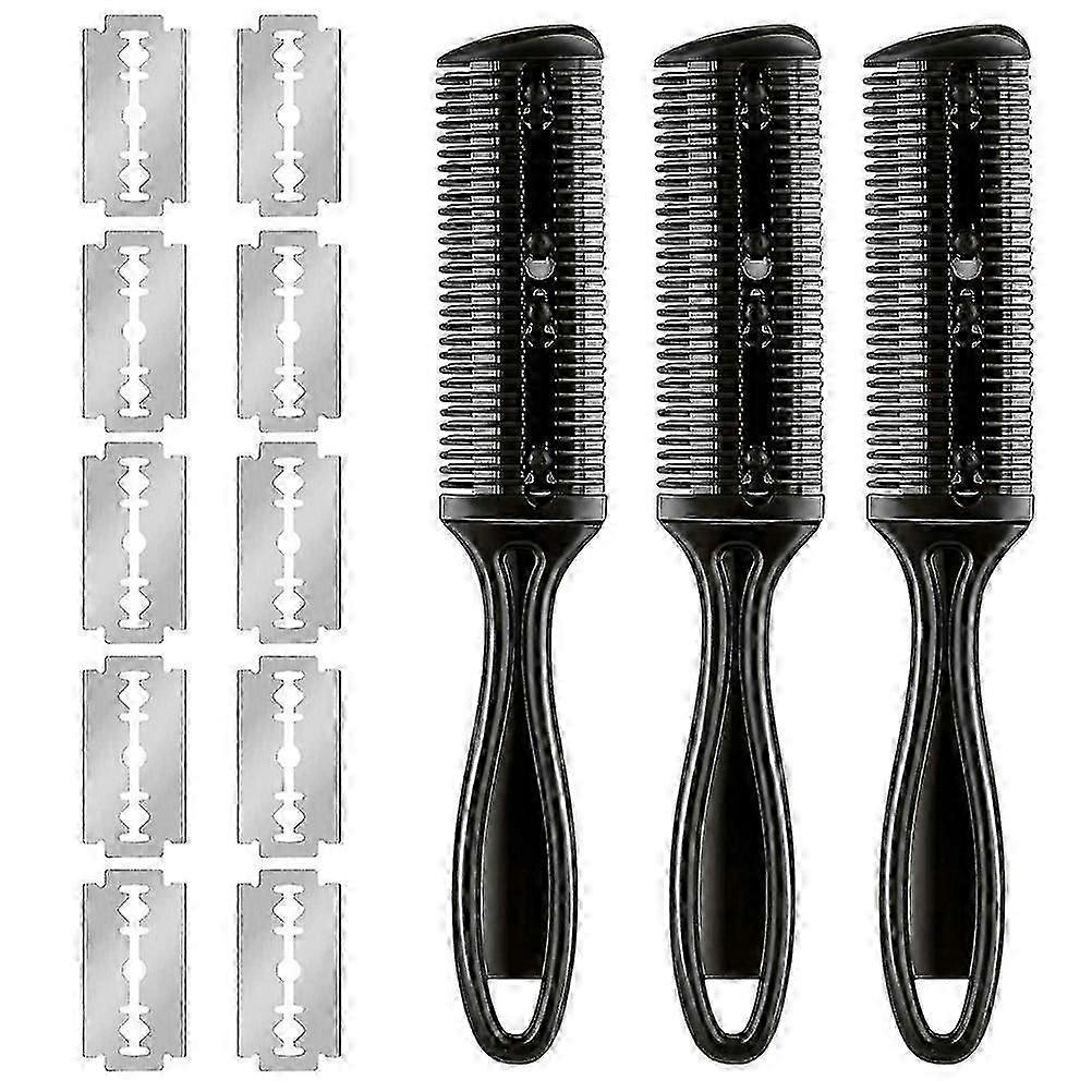 3pcs Hair Razor Combs Double Side Hair Cutting Comb With 10stainless Steel Blade Professional Barber Salon Hair Thinning Comb Tool