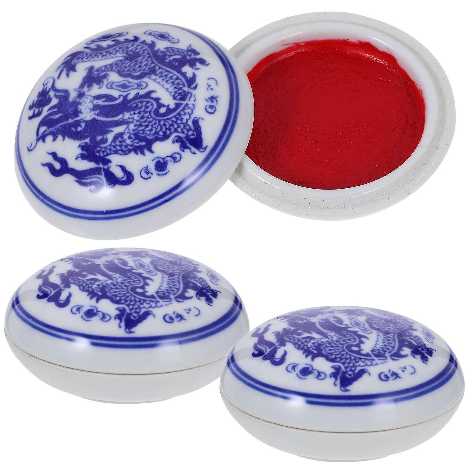 3pcs Chinese Painting Ink Pad Calligraphy Inkpad Decorative Ceramic Box Inkpad Painting Supplies
