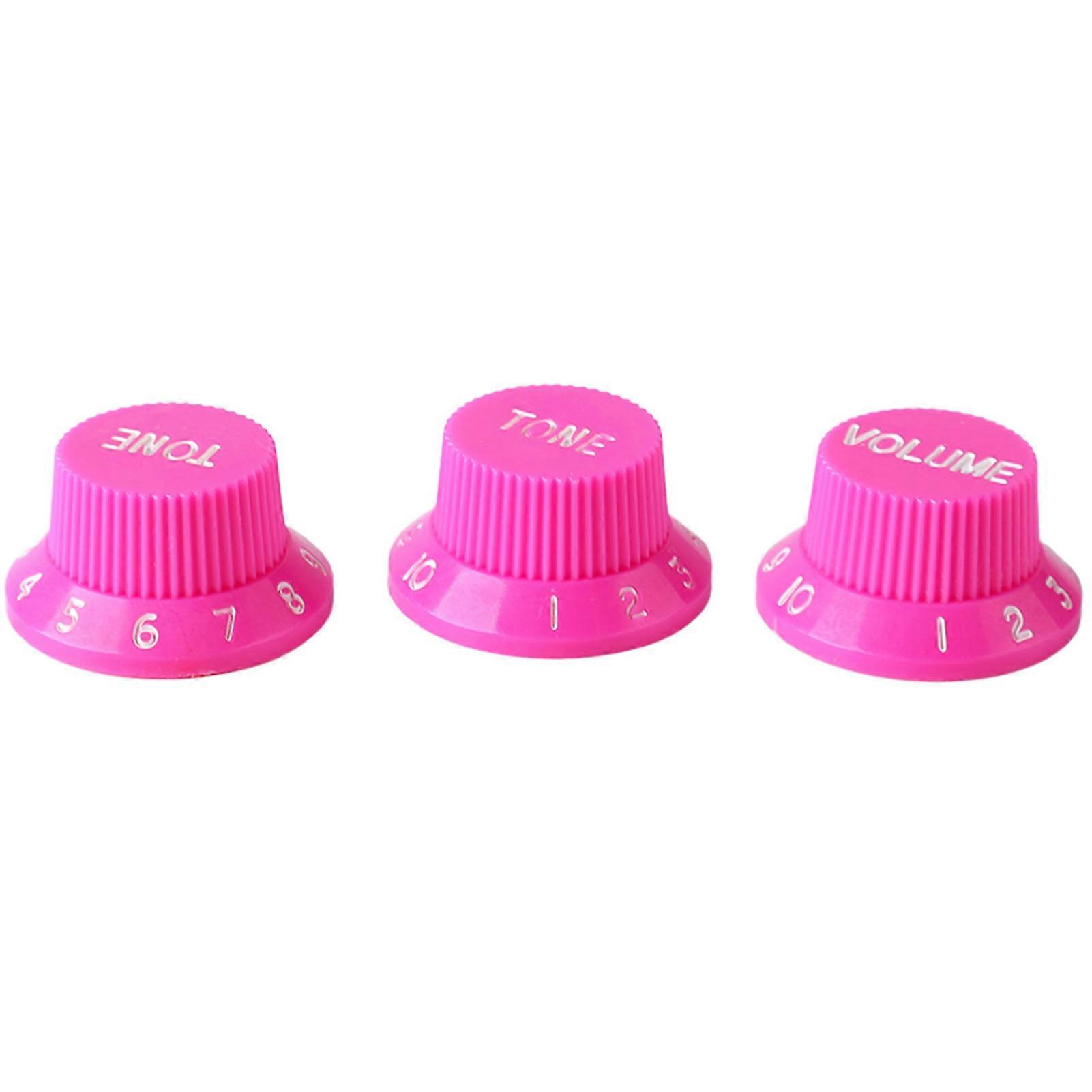 3Pcs Guitar Control Knob Plastic Electric Guitar Top Hat Volume Tone Control Bell Knob Fuchsia White Letters