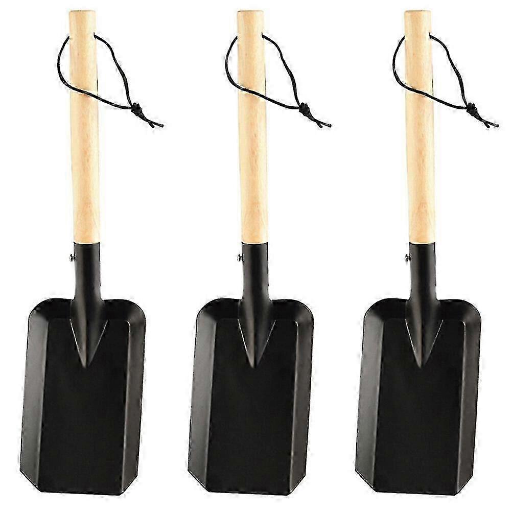 3pcs Household Small Iron Spade Oak Handle Garden Shovel Garden Soil Loosing Shovel