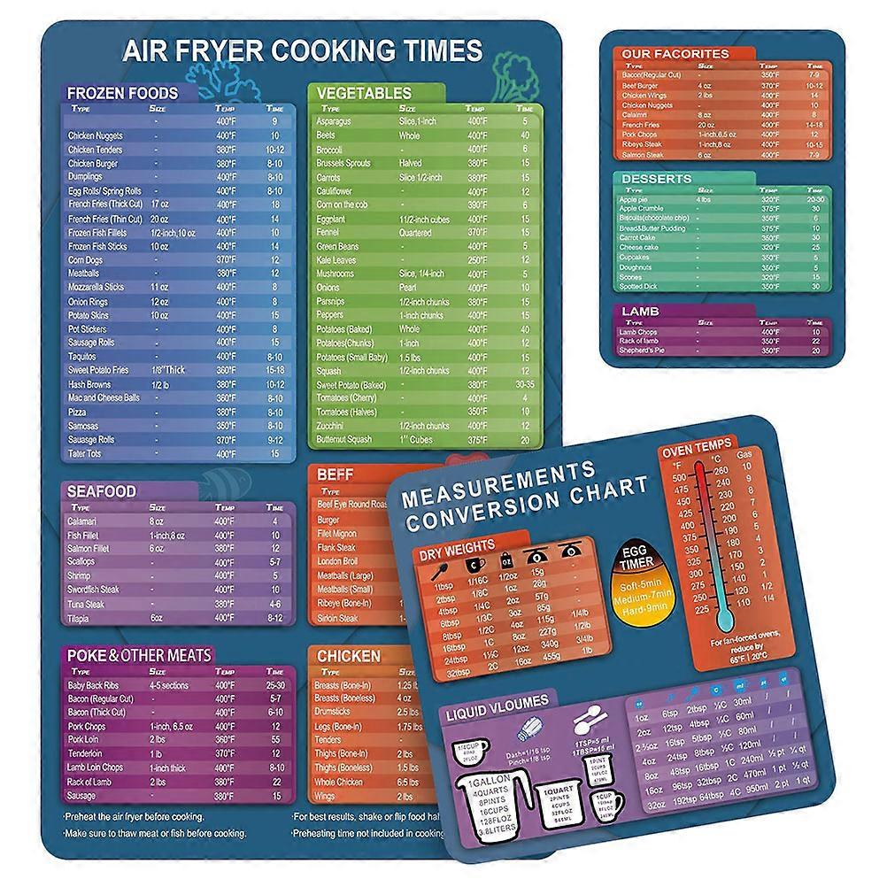 3pcs Air Fryer Cooking Pot Cooking Time Sheets Air Fryer Cooker Quick Reference Decals