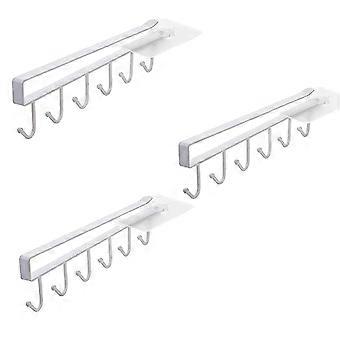 3pcs Mug Cups Wine Glasses Storage Hooks Kitchen Utensil Ties Belts And Scarf Hanging Hook Rack Holder Under Cabinet Closet Without Drilling (white)