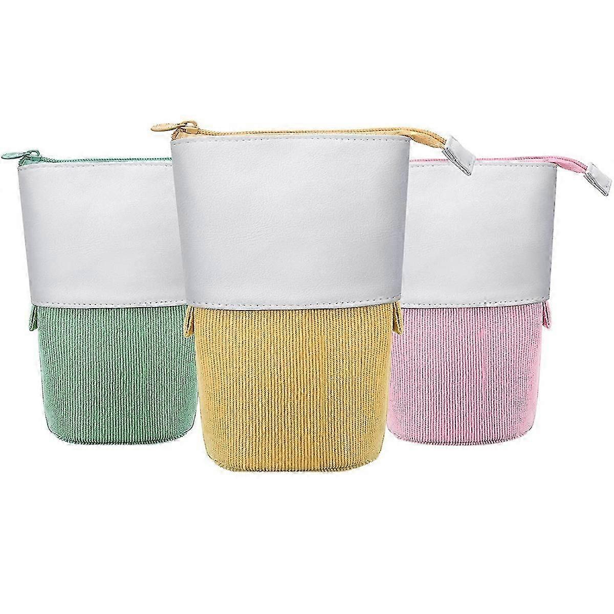 3 Pieces Telescopic Pencil Case Pencil Holder Canvas Dual-use -up Stand Pencil Bags For School Office College