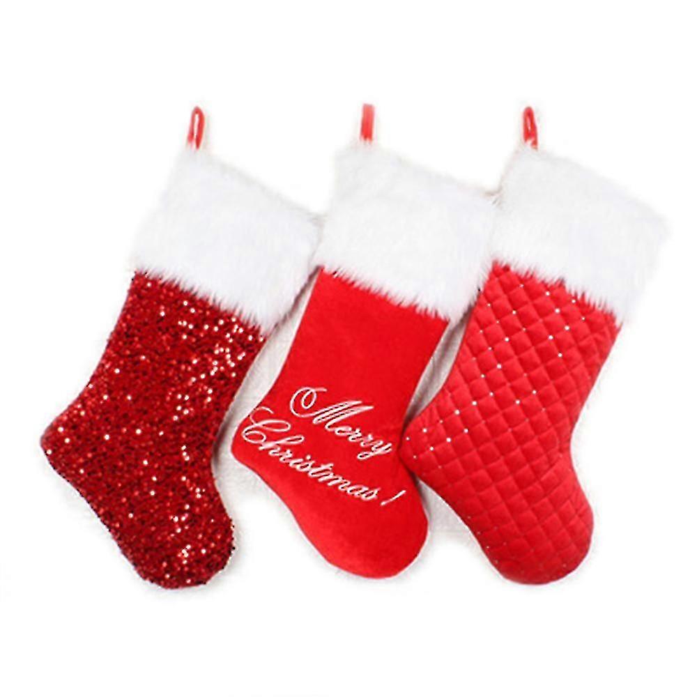 3pcs Christmas Stockings 19 Inches For Holiday Xmas Party Decorations Classic Red Stockings
