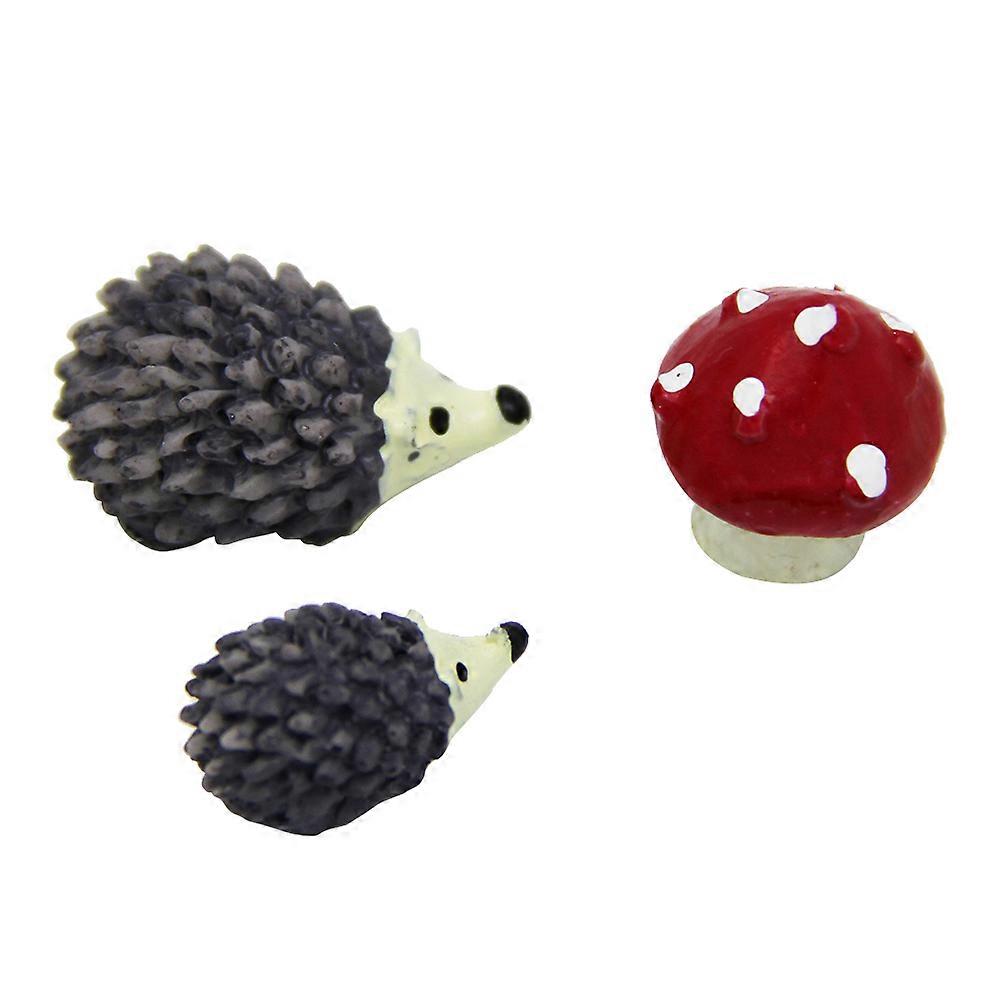 3pcs Garden Miniature Ornaments Cartoon Hedgehog and Mushroom Micro Landscaping Decoration