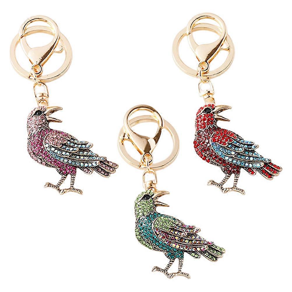 3pcs Keychain Backpack Hanging Key Pendant Rhinestone Bird Keyring Ornament Bag Hanging Pendant