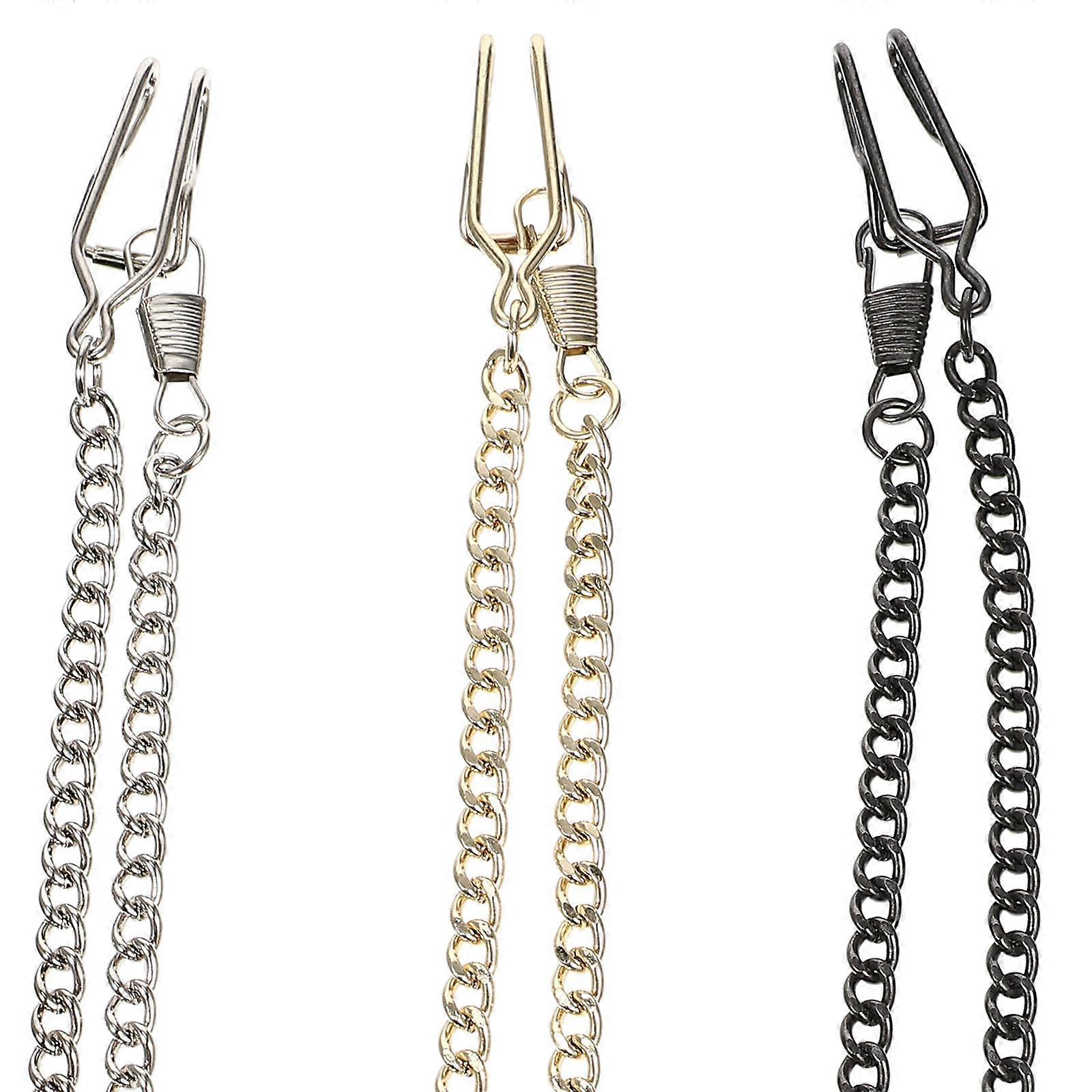 3pcs Pocket Watch Chain in Tungsten Steel – Vintage Style Multi Use Iron Chain for Men's Jeans, Waistcoat & Decorative Pants Accessory