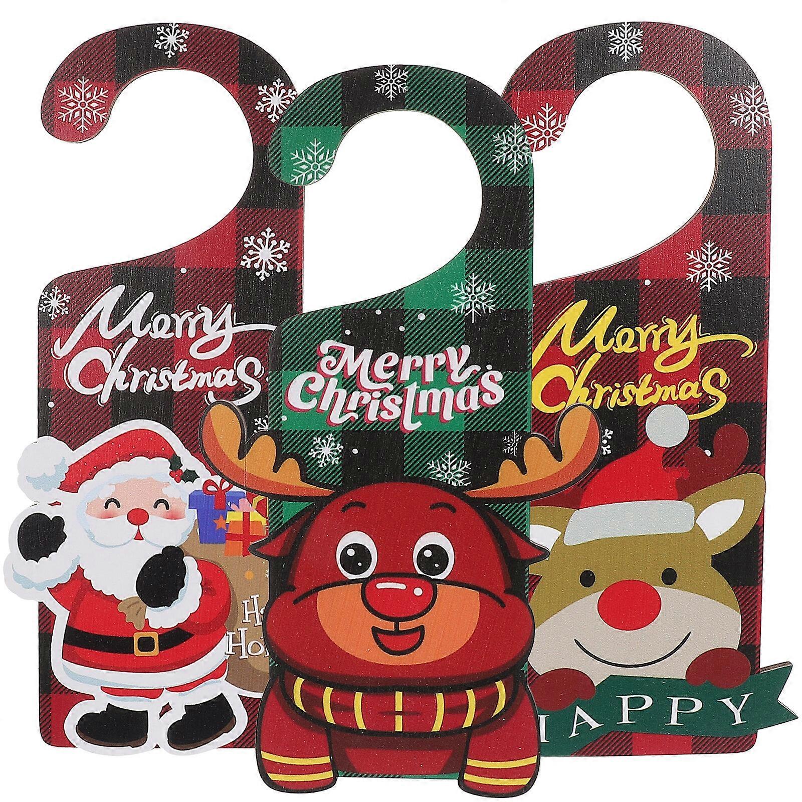 3 pcs Christmas Wood Hanging Sign Xmas Party Front Door Hanging Decor Xmas Wooden Signs