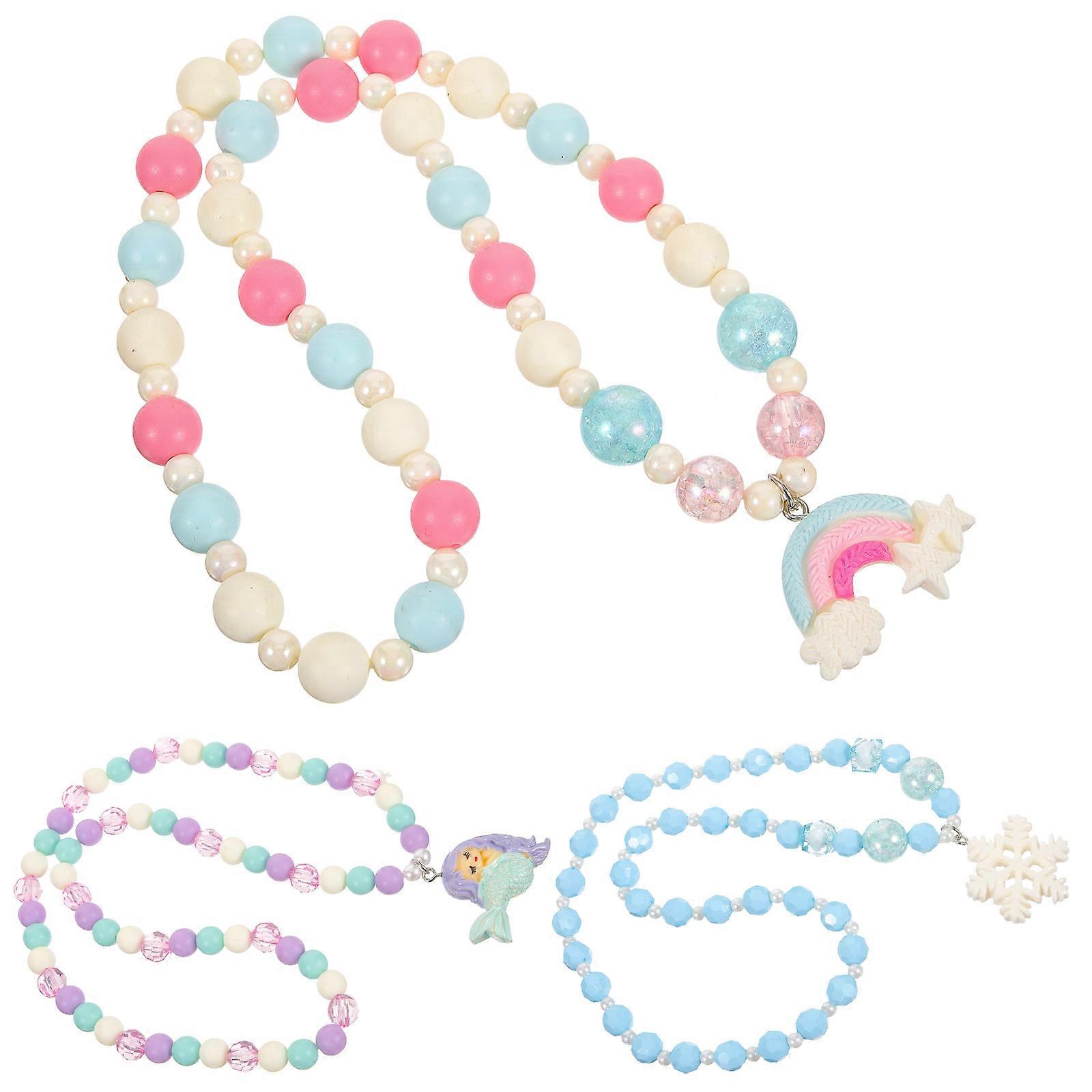 3Pcs Girls Necklace Set Beaded Pendant Jewelry Assorted Color for Christmas Wedding Events