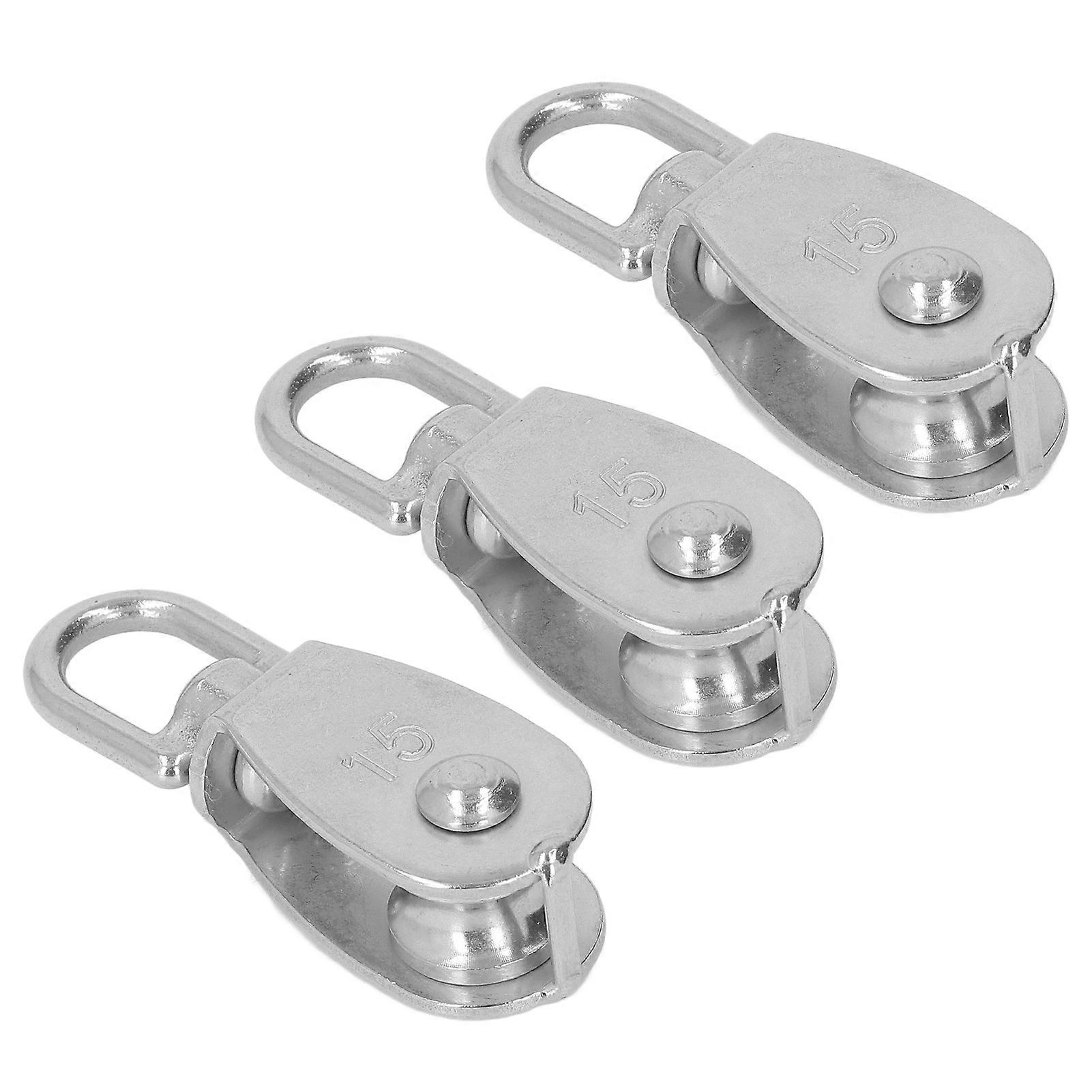 3PCS Single Pulley Block 35kg Load Capacity Stainless Steel M15 Hanging Wire Towing Wheel for Fitness