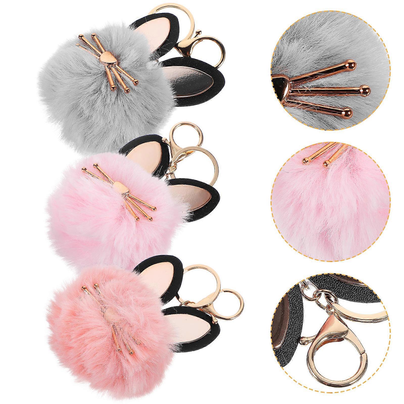 3pcs Cute Faux Ball Keychain Stylish Lightweight Key Ring Bag Pendant for Women Unique Accessory for Backpacks and Bags Pink, Grey, Beige