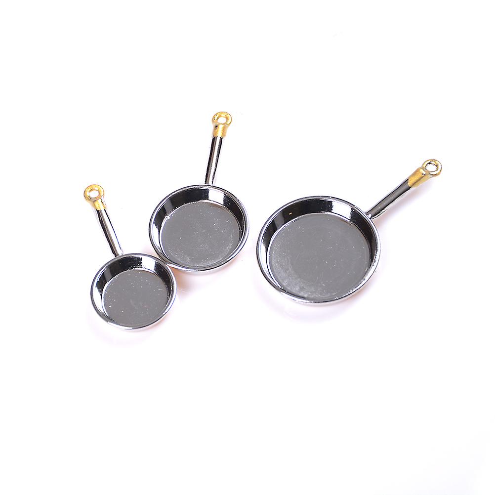 3 Pcs/set Dollhouse Mini Metal Frypan Frying Pans Cooking Pot Cookware Toy