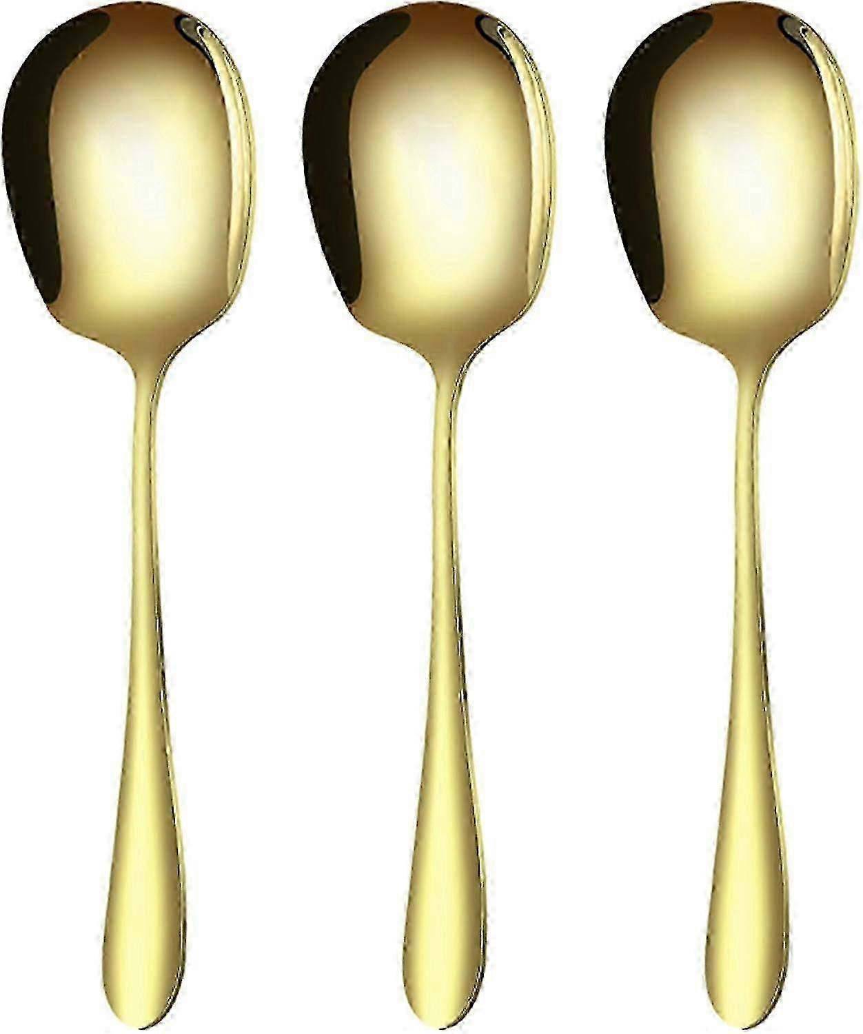 3 Pcs Large Gold Stainless Steel Buffet Serving Spoons - Ideal for Kitchen, Cooking, Restaurant & Banquet Use