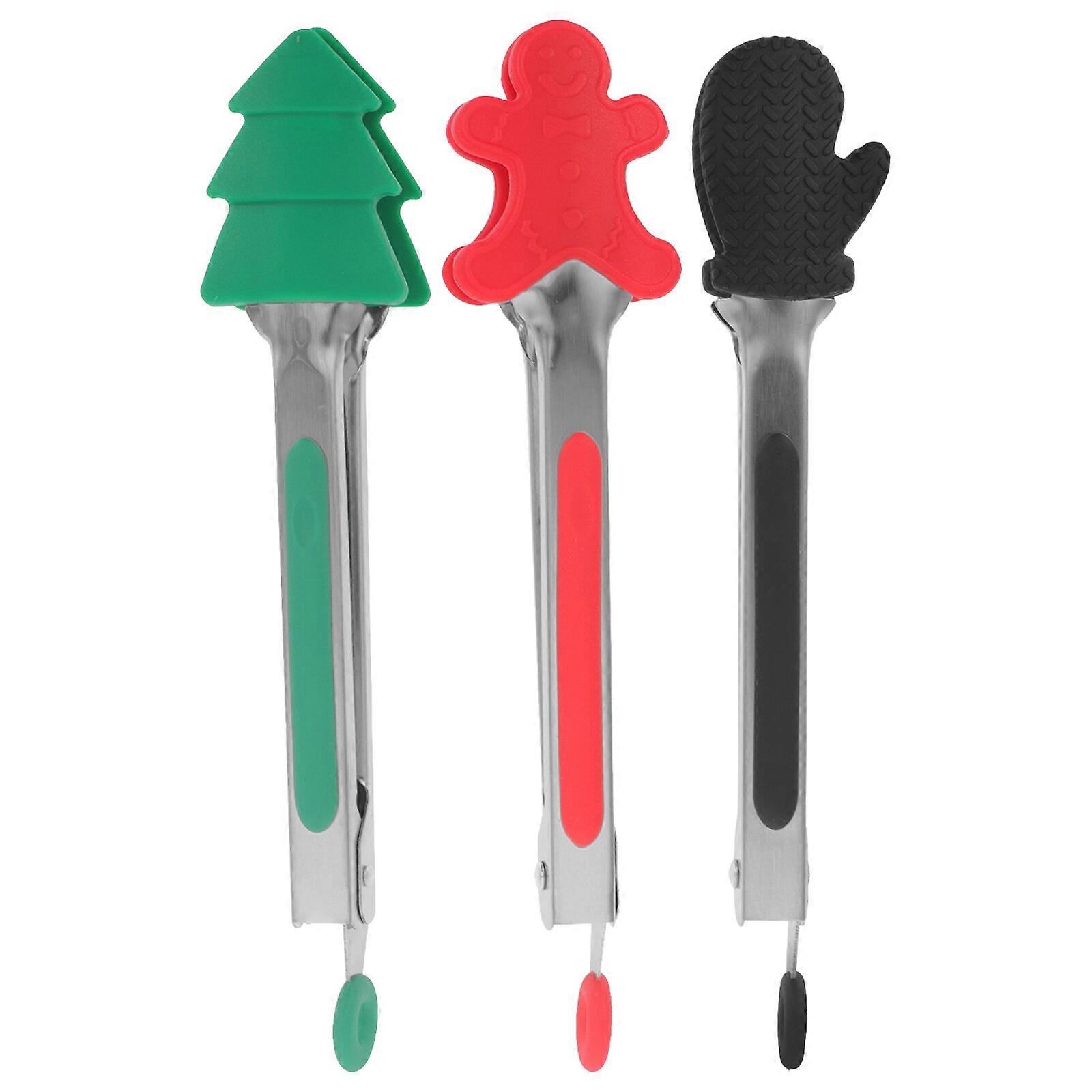 3pcs Food Tongs Christmas Bread Tongs Air Fryer Kitchen Tongs Metal Tongs With Silicone Tip