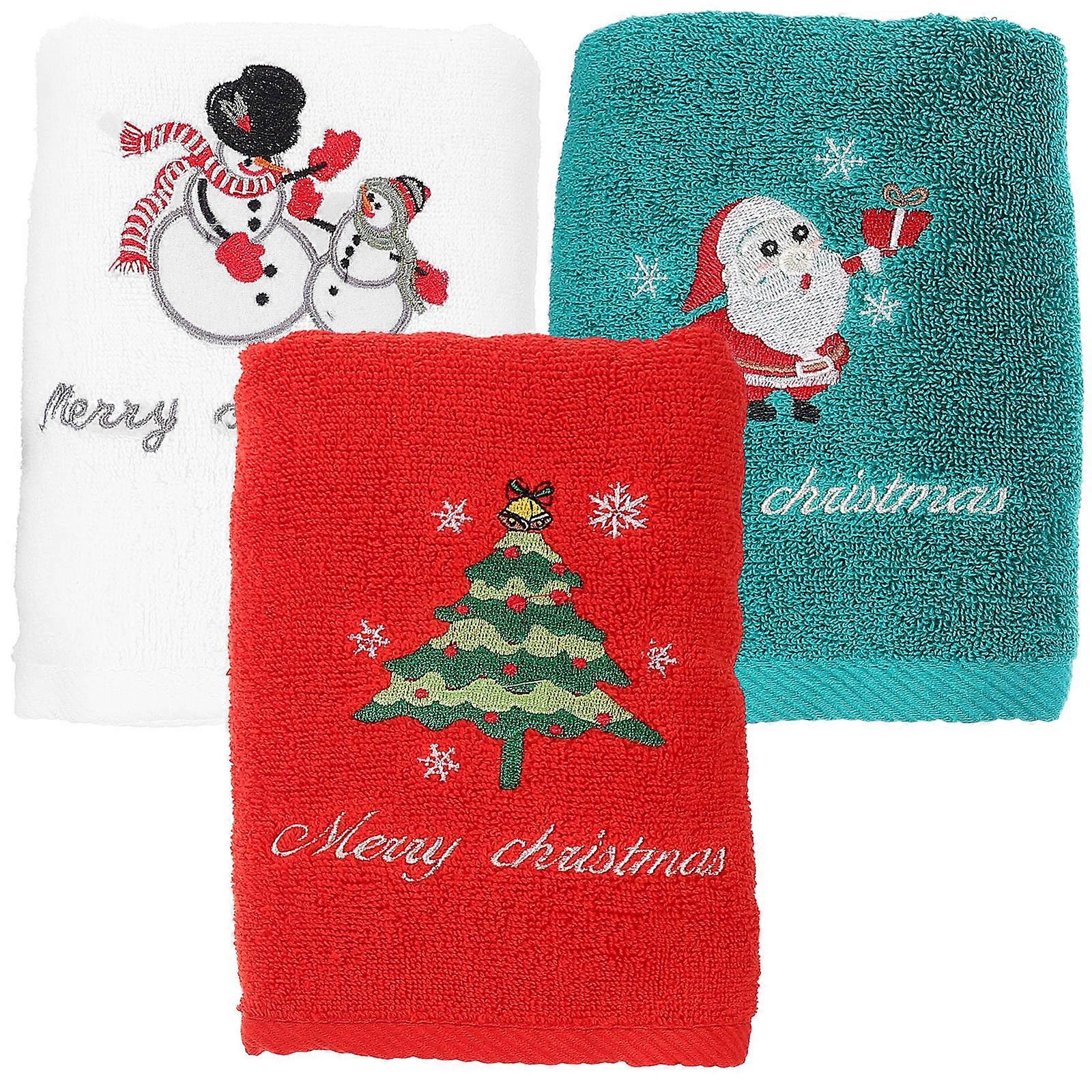 3pcs Soft Absorbent Cotton Face Hand Towels Embroidered Christmas Decorative Set for Bathroom Kitchen Gift
